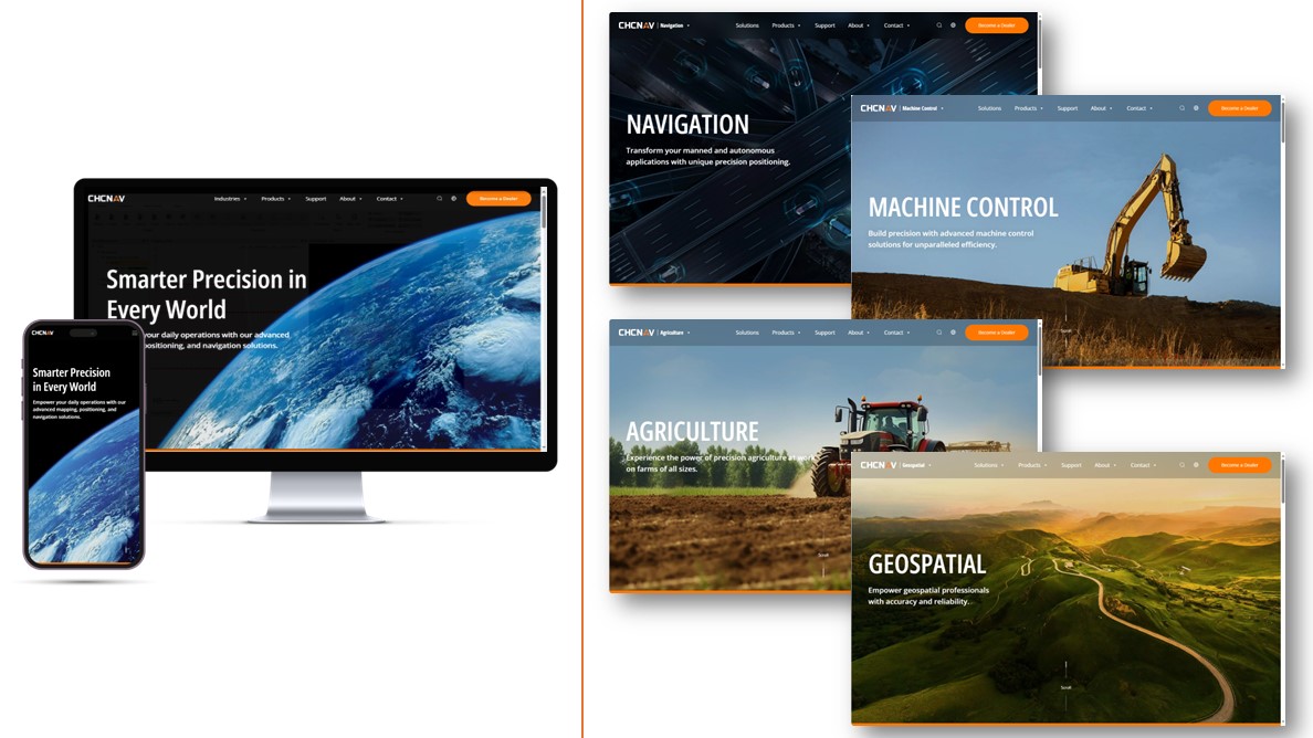 O novo site apresenta um design moderno complementado por elementos interactivos que melhoram a experiência do utilizador, tornando a navegação intuitiva e envolvente. Inclui sites especializados da indústria para Geoespacial, Controlo de Máquinas, Navegação e Agricultura, permitindo aos utilizadores encontrar rapidamente soluções adaptadas às suas necessidades profissionais.